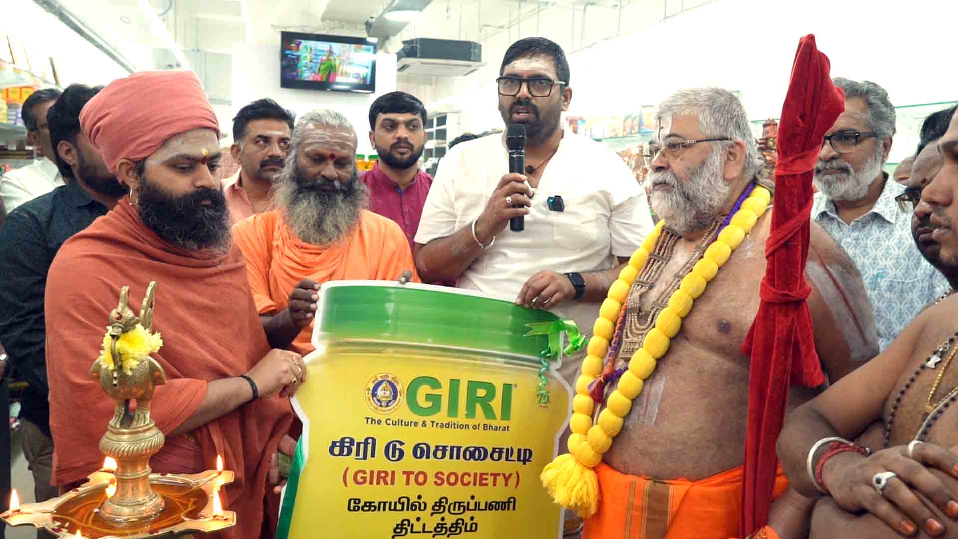 As part of the launch, the company donated pure cow ghee to 21 temples in and around Kumbakonam to support daily rituals, including poojas, deepa aradhanai and prasadam preparation. The initiative also marked the formal launch of “Giri to Society”, a spiritual service programme aimed at providing essential offerings and materials to temples across Tamil Nadu.